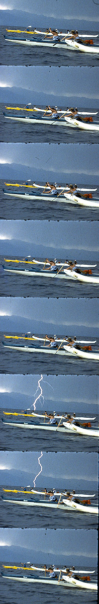 Obviously, I still shoot super 8mm regularly and was fortunate enough to be on the water filming when the lightning struck. Taken at 24 frames per second, only two frames captured the burst of lightning. Needless to say, I did not capture it with my Nikon 35mm still camera. The images are incredibly grainy due to the small frame size (8mm wide, or 1/16th the area of a 35mm frame). They have that 1970's Bigfoot quality to them if you recall that footage on TV. I just love it!